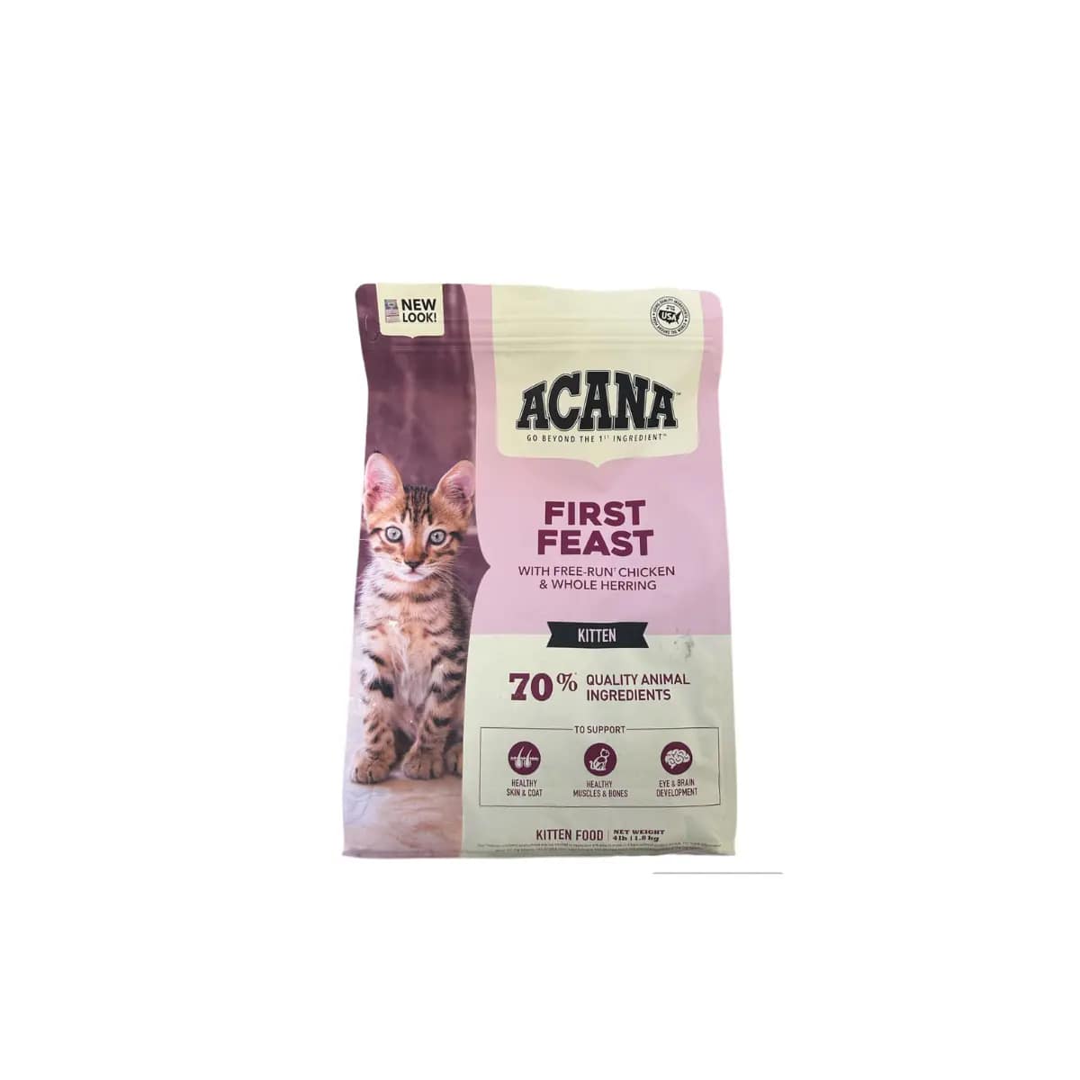 Acana First Feast está formulado para dar a los gatitos todo lo que necesitan para un crecimiento saludable y un desarrollo máximo. Siguiendo la filosofía «Biologically Appropriate», esta receta se basa en el uso de presas pequeñas como el pollo de corral y el arenque del pacífico, entregando nutrientes en su forma más natural y nutritiva.