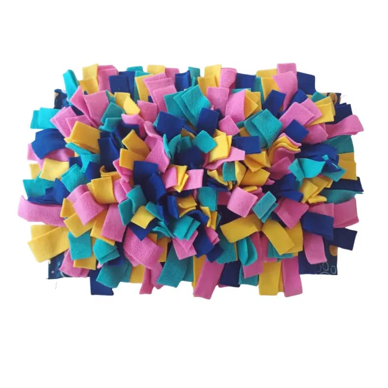 Alfombra olfativa 45×25. Formato rectangular ideal para sesiones de enriquecimiento más largas. Hecha a mano, 100% lavable y también incluye colores que perciben tus mascotas.