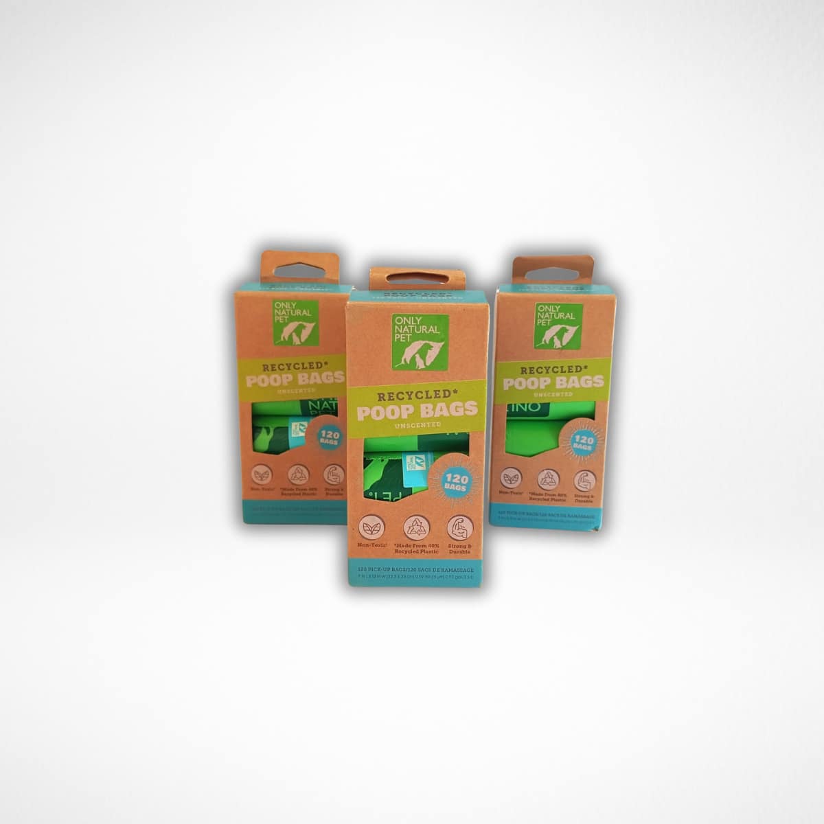 120 bolsas ecológicas para recoger popó de perros. Fuertes, no tóxicas, con 40% plástico reciclado y empaque 100% reciclado. ¡Limpieza segura y sostenible en cada paseo!