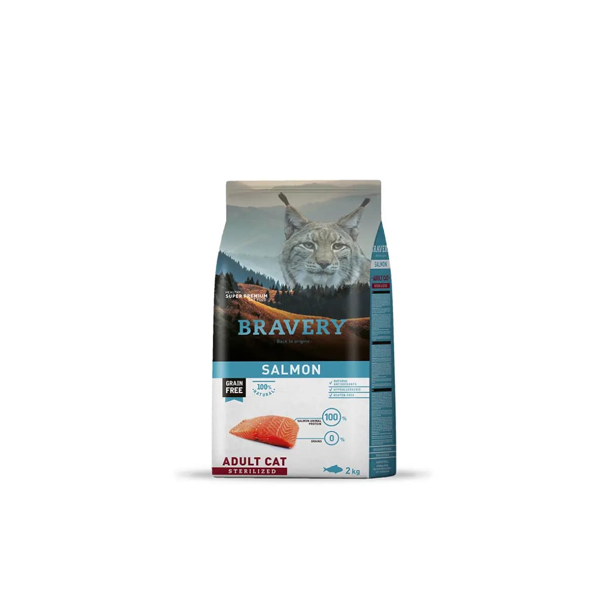 Bravery Salmon Sterilized es una dieta exclusiva que utiliza el salmón como única fuente de proteína animal. Al ser un pescado rico en nutrientes, es la opción perfecta para gatos que requieren un control estricto de su peso tras la esterilización, además de ser altamente palatable para los felinos más exigentes.