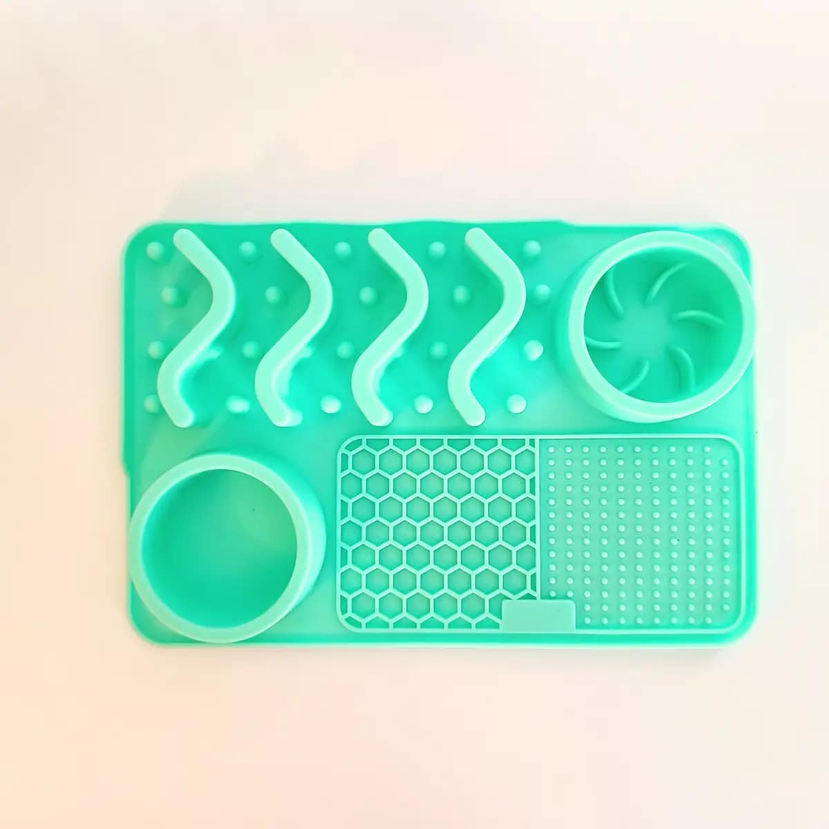 Nuestro «Lickimat» para perros o gatos es mucho más que un comedero: es una herramienta de enriquecimiento mental 4-en-1 que calma, entretiene y mejora la digestión. Diseñado en silicona segura y flexible, combina cuatro zonas de desafío en una sola pieza de 30 x 20 cm, ideal para transformar la comida en una experiencia relajante y estimulante.